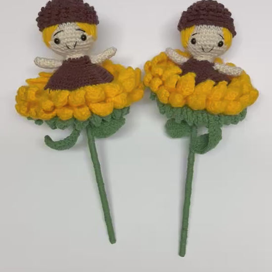 Bring a little sunshine wherever you go with this beautifully handcrafted Sunflower Blossom Doll. Lovingly crocheted with soft, high-quality yarn, this unique design transforms a vibrant sunflower into an adorable doll tucked right inside its petals.